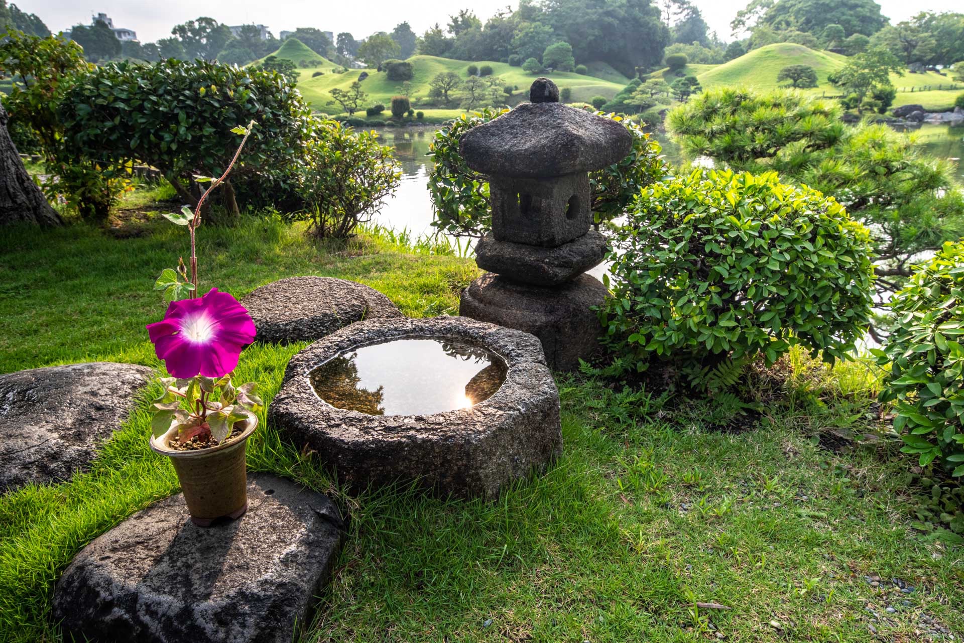 肥後六花(肥後椿、肥後芍薬、肥後花菖蒲、肥後朝顔、肥後菊、肥後山茶花)のふるさとは、宝暦6(1756)年に熊本藩第六代藩主・細川重賢公が創設した御薬園「蕃滋園」。