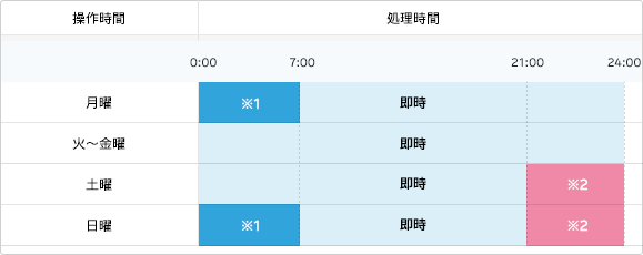 | 振替 | 月~金 | 24時間 | 0時~18時 |