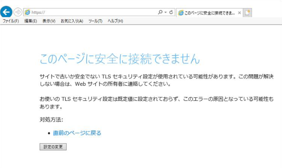 (注)ブラウザの初期設定でTLS1.2は無効となっておりますので、有効にして頂く事でもご利用は可能となります。