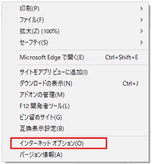 (1)Internet Explorer右上のメニューバーより[ツール]-[インターネットオプション]の順にクリック